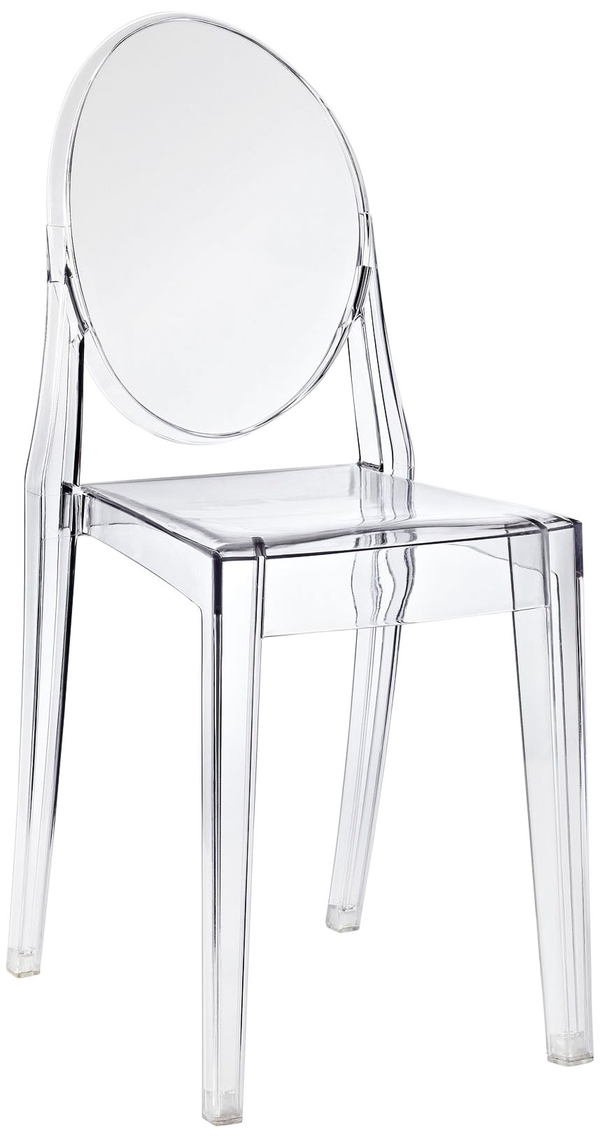 The contemporary coolness of the clear acrylic shell and powder coated chrome legs is exactly what you need for your dining area.